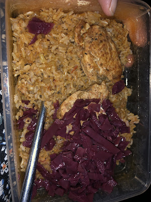 I had lots of the rice from the Piri piri chicken meal on Thursday night. I've a portion in the freezer too! So I had bought some really beautiful big peppers and cut one in half. I mixed the cold rice with the leftover half tin of cherry tomatoes I had and added some onion granules and my favourite cajun seasoning. I spooned the rice into the pepper halves and baked it all in the oven for a good half hour. I served it with some leaves and pickled red cabbage which is speed on SW and again a bit sugary for F8 - also rice is limited on their but mine is slightly more nutritious and wholesome brown basmati rice which is why I am combining the two regimes.